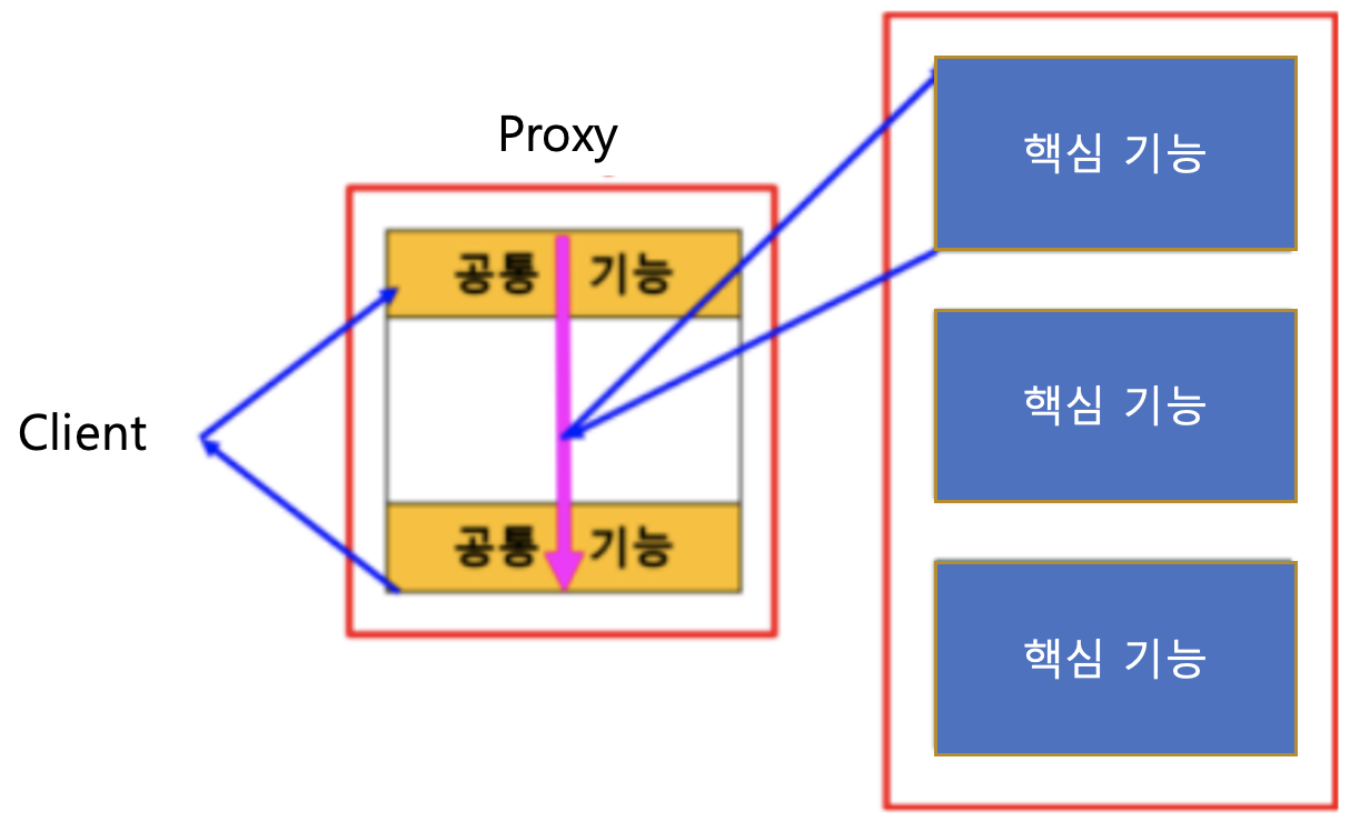 - 프록시를 통해 핵심 관심사를 구현한 객체에 접근하게 되는데,
