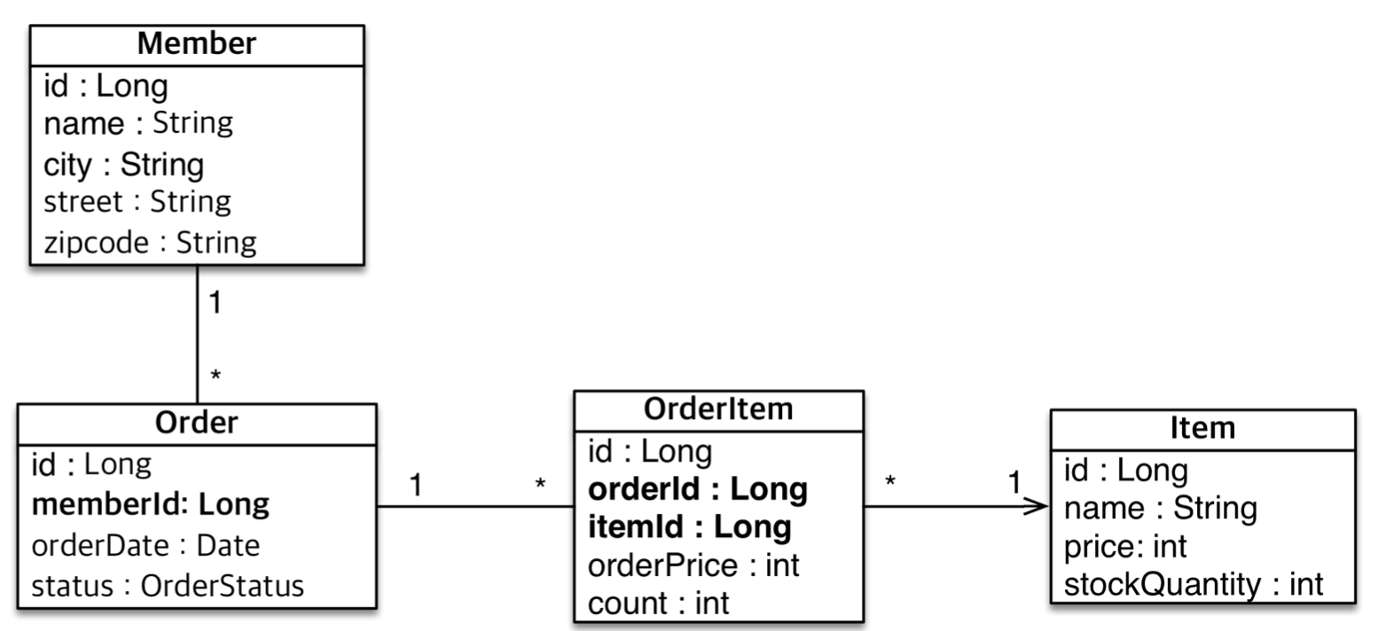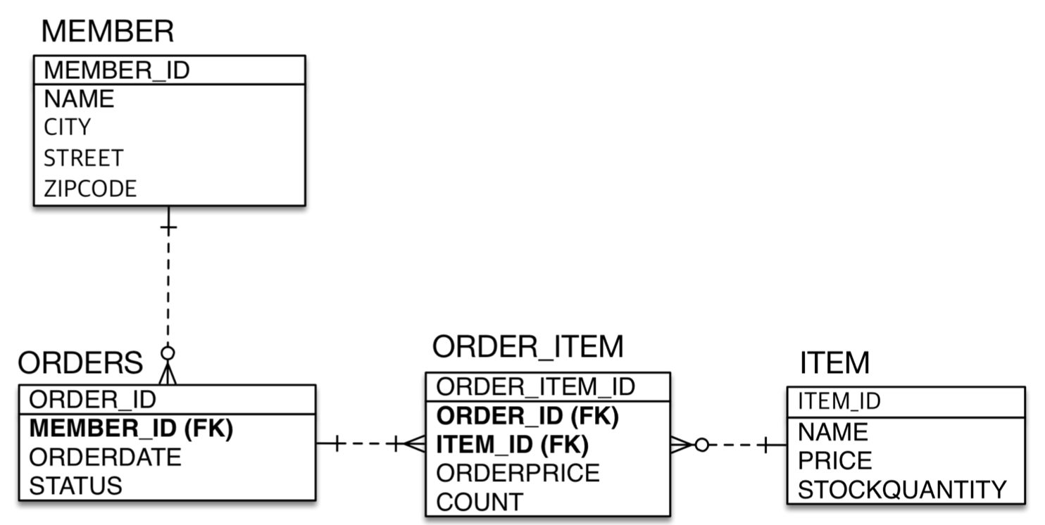 - 회원과 주문의 관계 : 회원은 여러 번 주문할 수 있다.