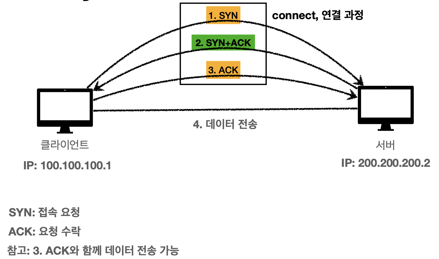 서로 연결이 되었다는 것을 확인하고 데이터를 전송한다.