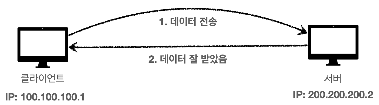 TCP에서는 데이터를 전송하면 데이터를 잘 전송 받았다고 응답을 보내준다.