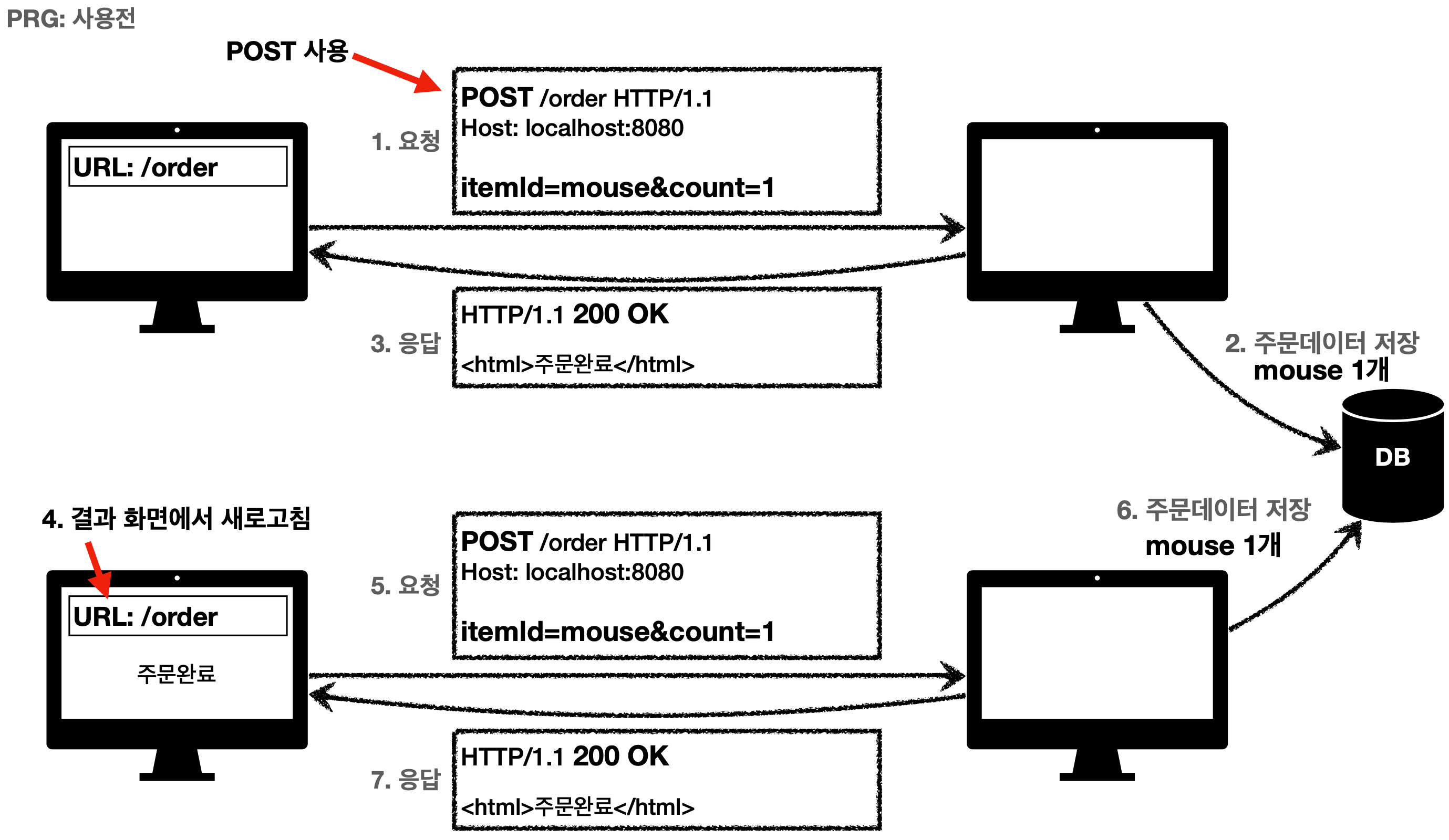 - POST로 주문후에 주문 결과 화면을 GET 메서드로 리다이렉트