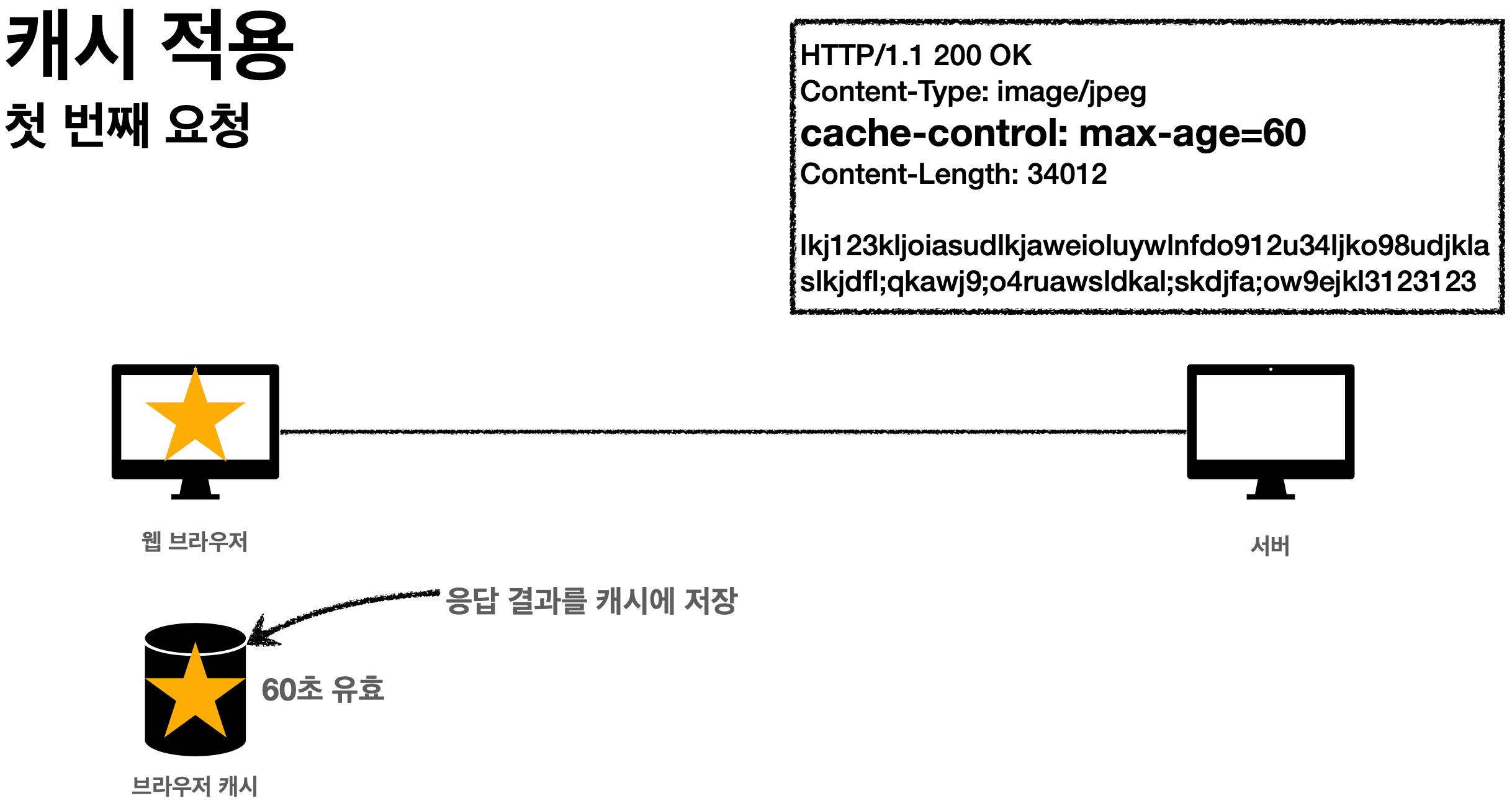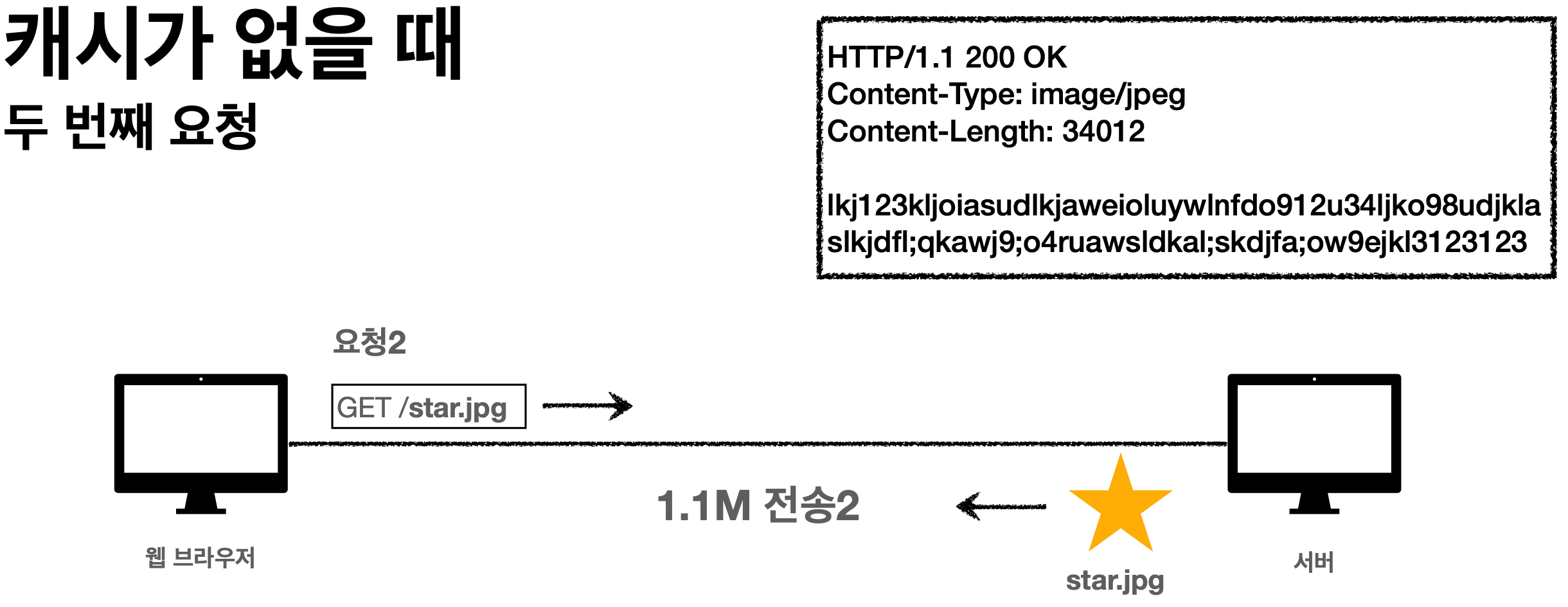 - 두 번째 요청을 캐시가 없기 때문에 첫 번째 요청과 똑같은 응답을 다시 내려줬다.