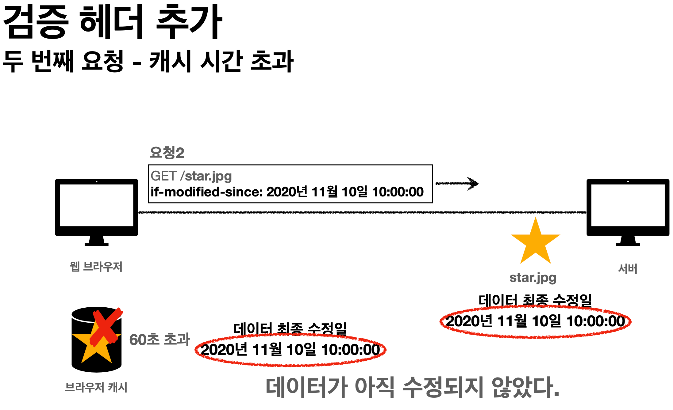 - 캐시 유효 시간이 초과해서 서버에 다시 요청하면 다음 두 가지 상황이 나타난다.