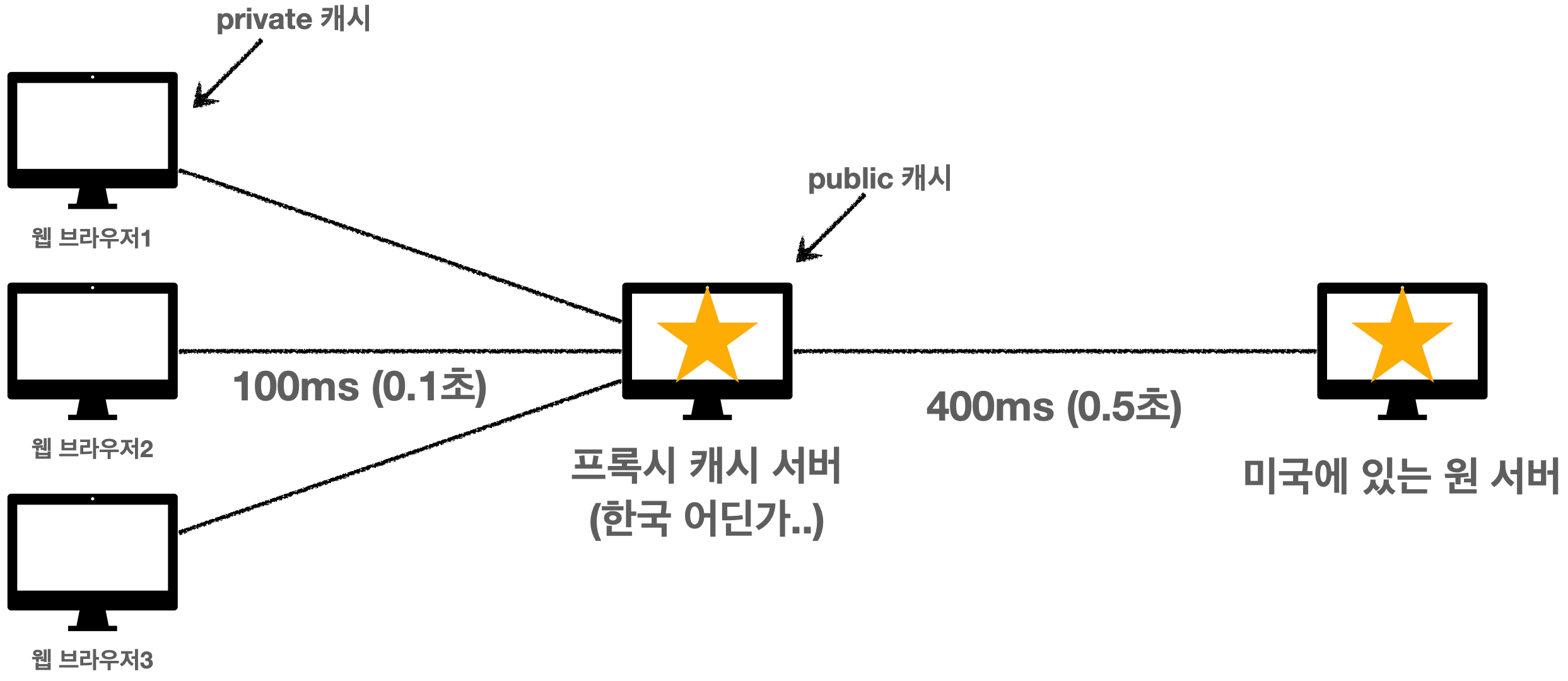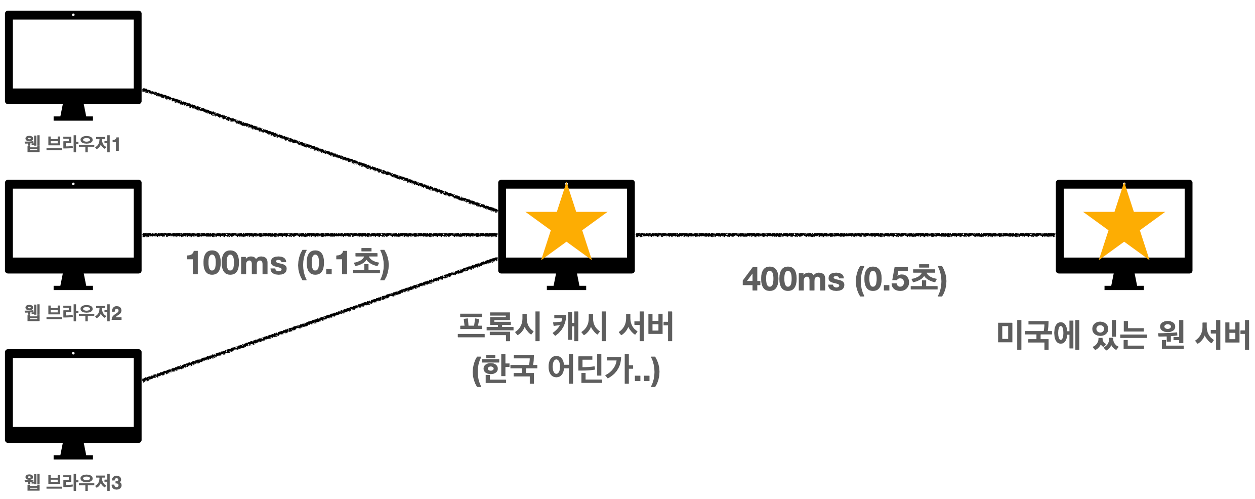- 웹 브라우저가 origin 서버에 직접 접근하기 때문에 시간이 오래 소모된다.