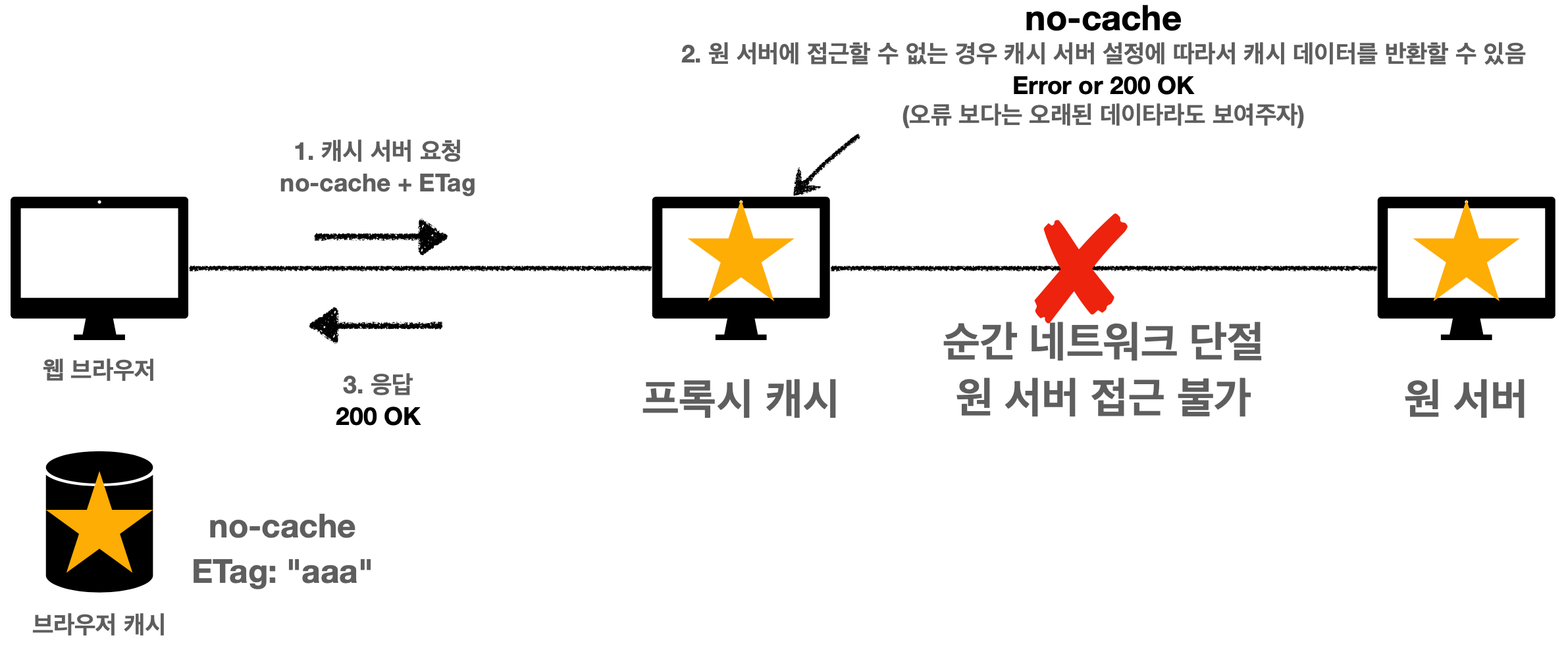 no-cache 동작 - origin 서버 접근 불가