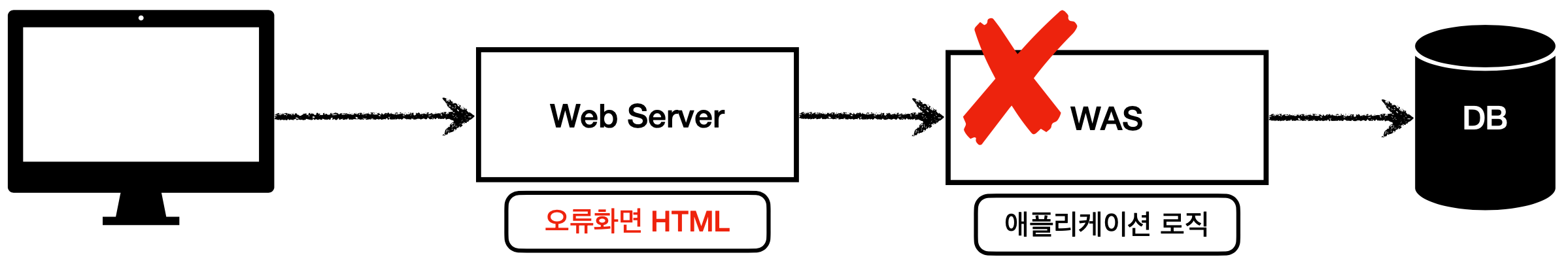 - WAS에서 장애가 발생하면 오류 화면도 노출이 불가능하다.