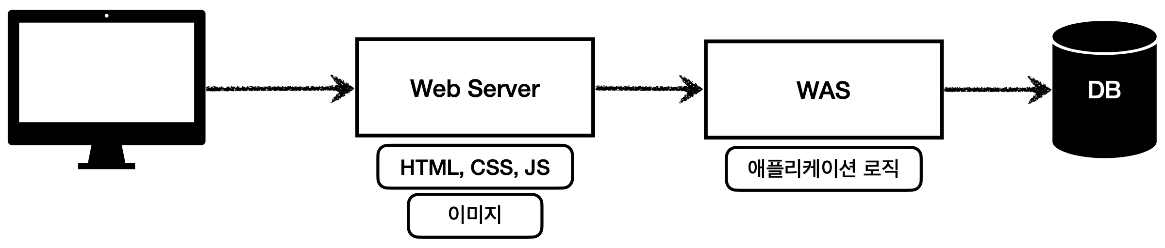 - WAS는 중요한 애플리케이션 로직 처리를 전담한다.