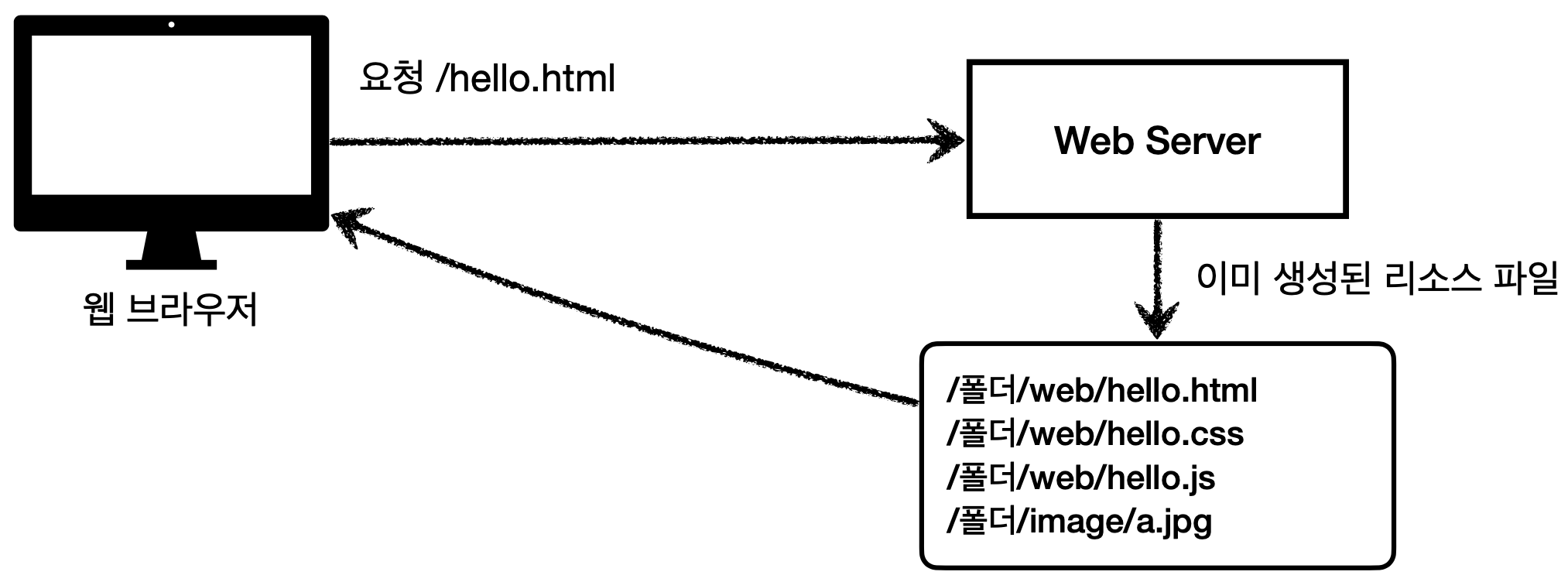 - 이미 생성된 리소스 파일(HTML 파일, CSS, JS, 이미지, 영상 등)을 제공한다.
