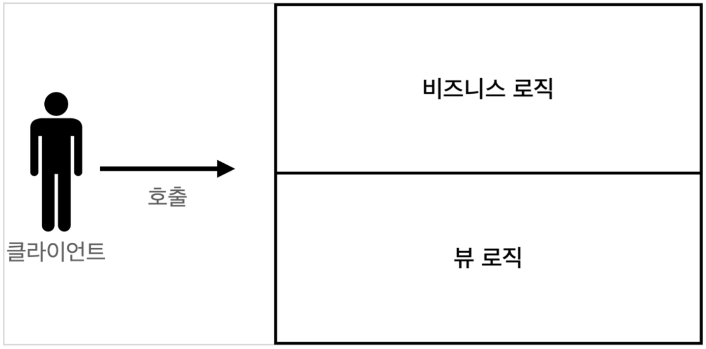 비즈니스 로직을 호출하는 부분에 변경이 발생해도 해당 코드를 고쳐야 하고, UI를 변경할 일이 있어도 비즈니스 로직이 함께 있는 해당 파일을 수정해야 한다.