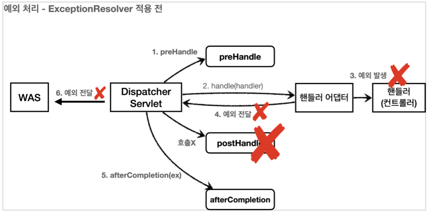 참고 : ExceptionResolver 로 예외를 해결해도 postHandle() 은 호출되지 않는다.
