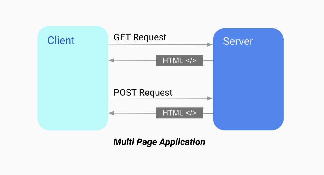 사용자가 웹 페이지를 이동할 때(새로운 페이지를 요청할 때 혹은 새로고침) 서버에서 렌더링된 정적 리소스(HTML, CSS, JavaScript)가 다운로드 되어 사용자에게 보여준다.