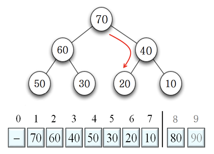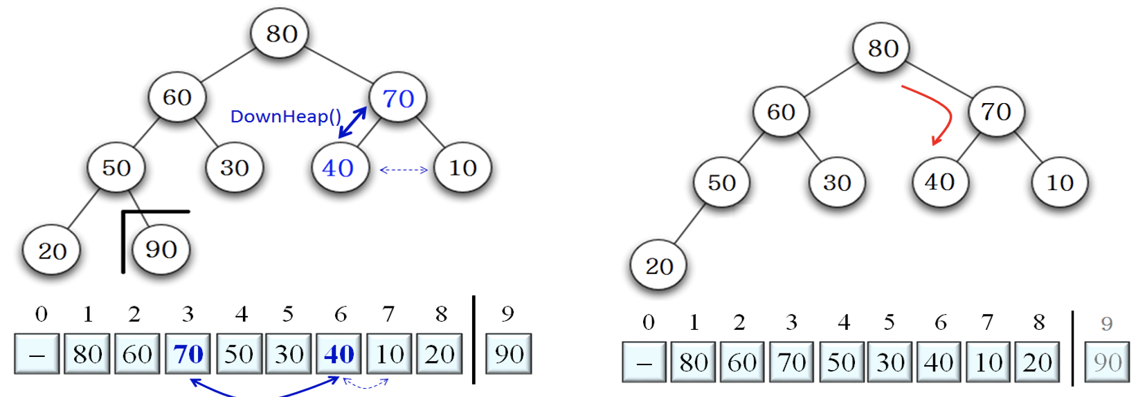 - 70과 10이 교환된 후 힙 조건을 만족한 결과