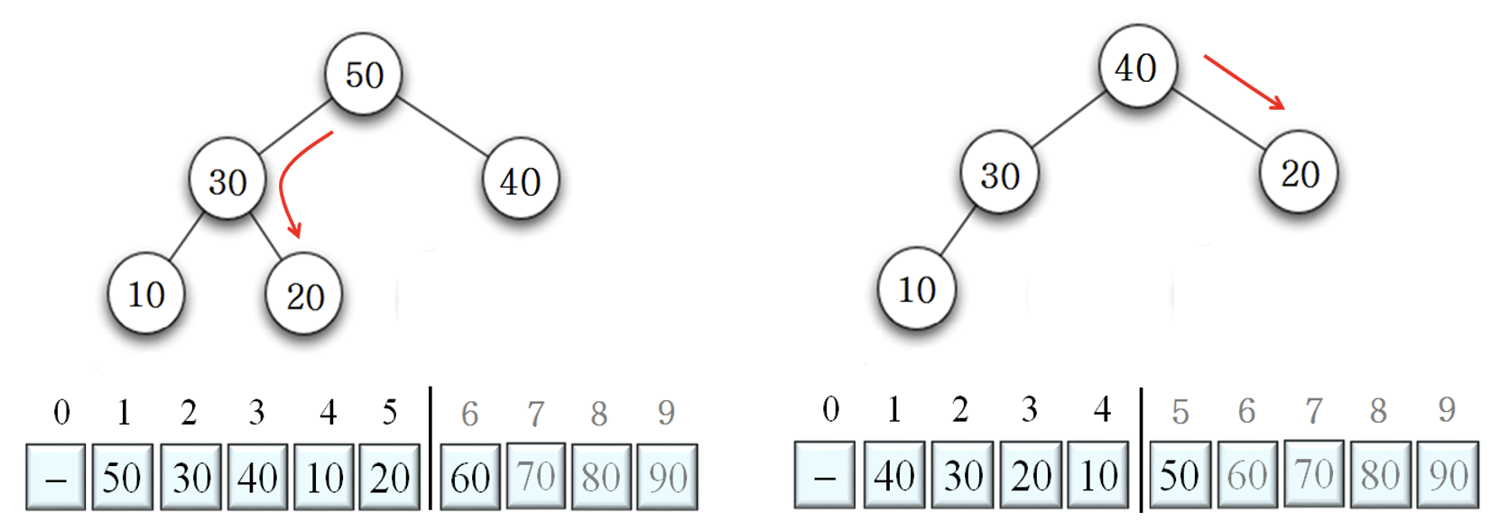 - 80과 20이 교환된 후 힙 조건을 만족한 결과