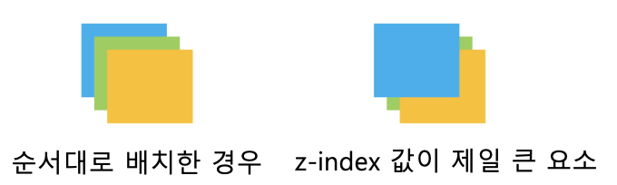 - z-index 값이 클수록 위에 놓임
