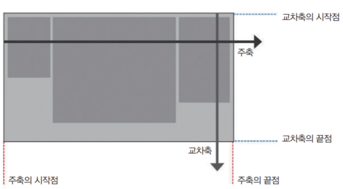 - 주축이 세로일 경우 박스들이 위에서 아래로 배치 (역방향 가능)